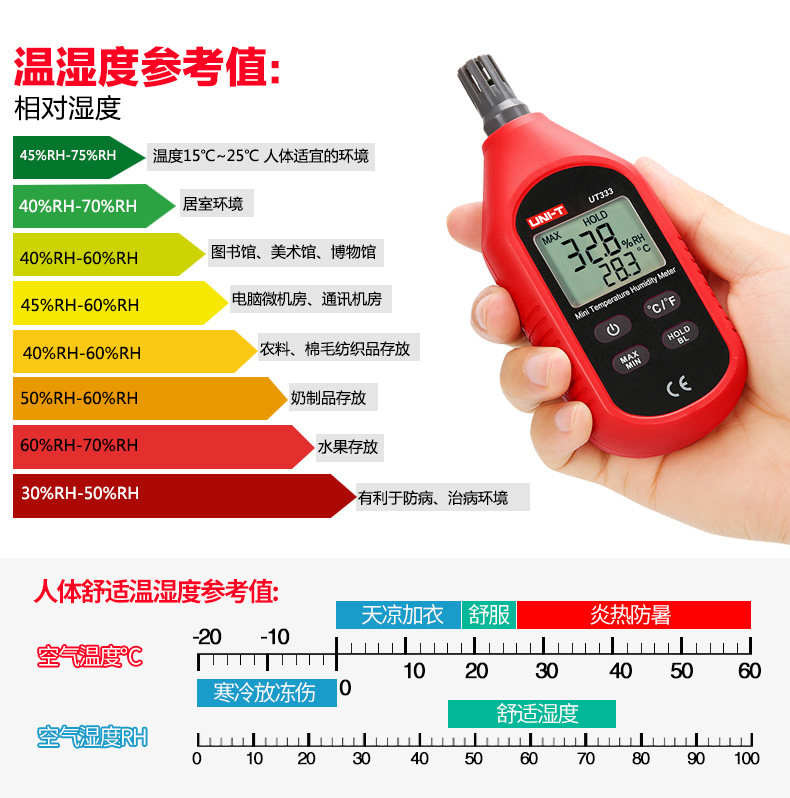 • 优利德温湿度计家用高精度室内农业工业婴儿房电子温度计湿度计