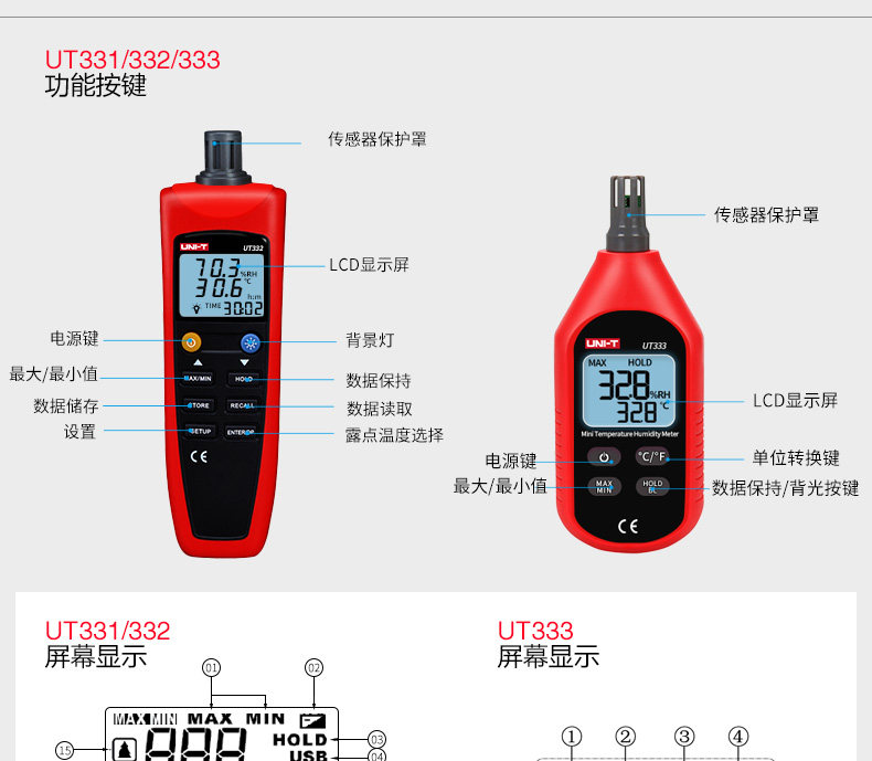 优利德温湿度计家用高精度室内农业工业婴儿房电子温度计湿度计