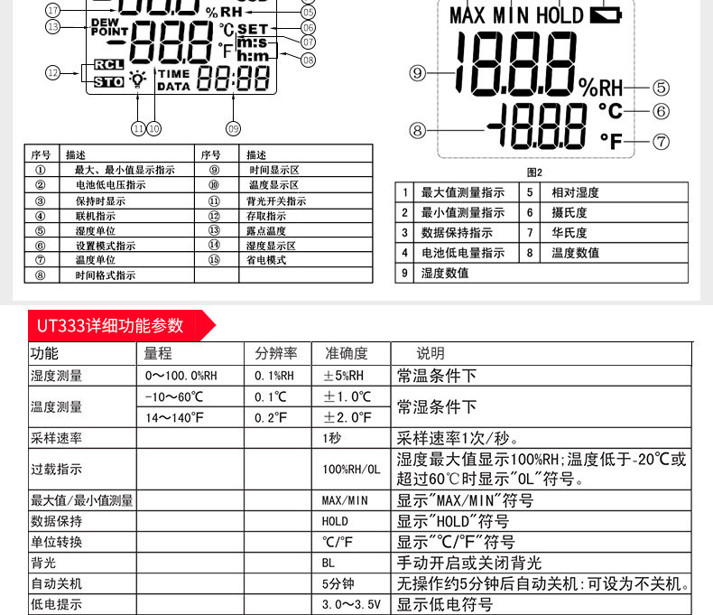 UT333温湿度计可设为不自动关机,关闭方法是:按住右下角“HOLD BL”不放,再按下开机键。就是设置为不关机了。  缝隙去除.jpg缝隙去除.jpg