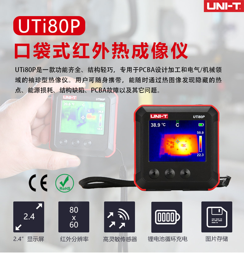 优利德UTi80P红外线热像仪高精度测温口袋式热成像热感地暖检测仪