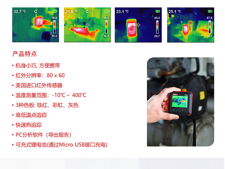 • 优利德UTi80P红外线热像仪高精度测温口袋式热成像热感地暖检测仪