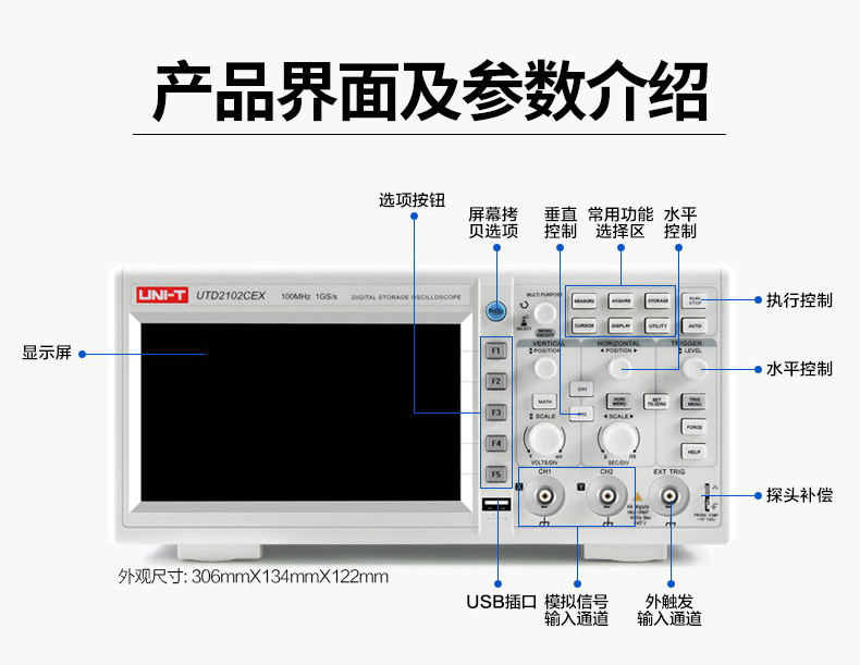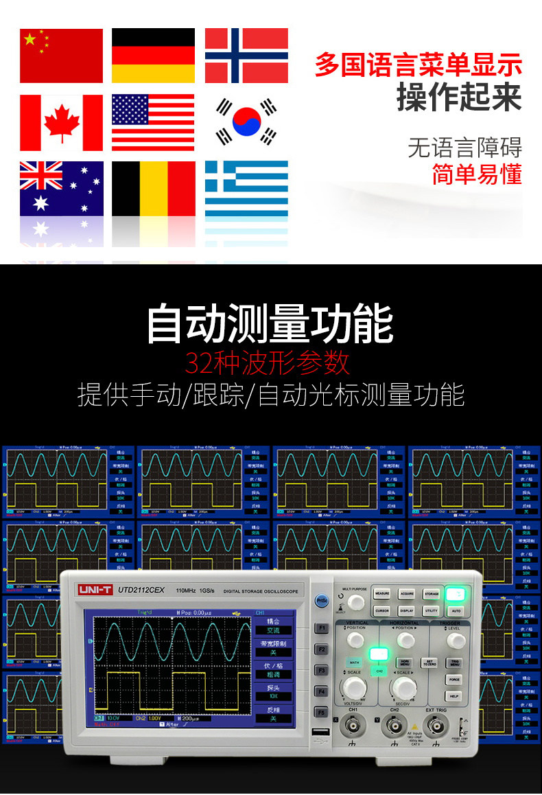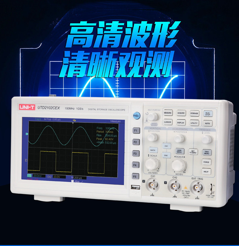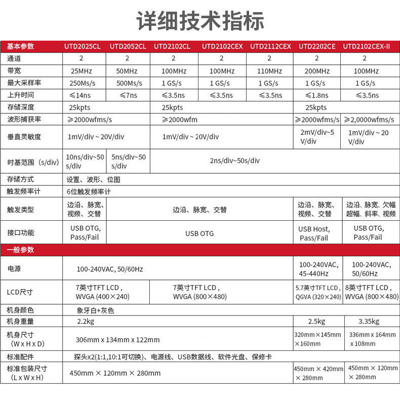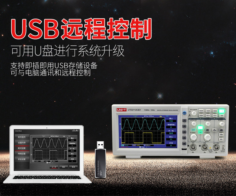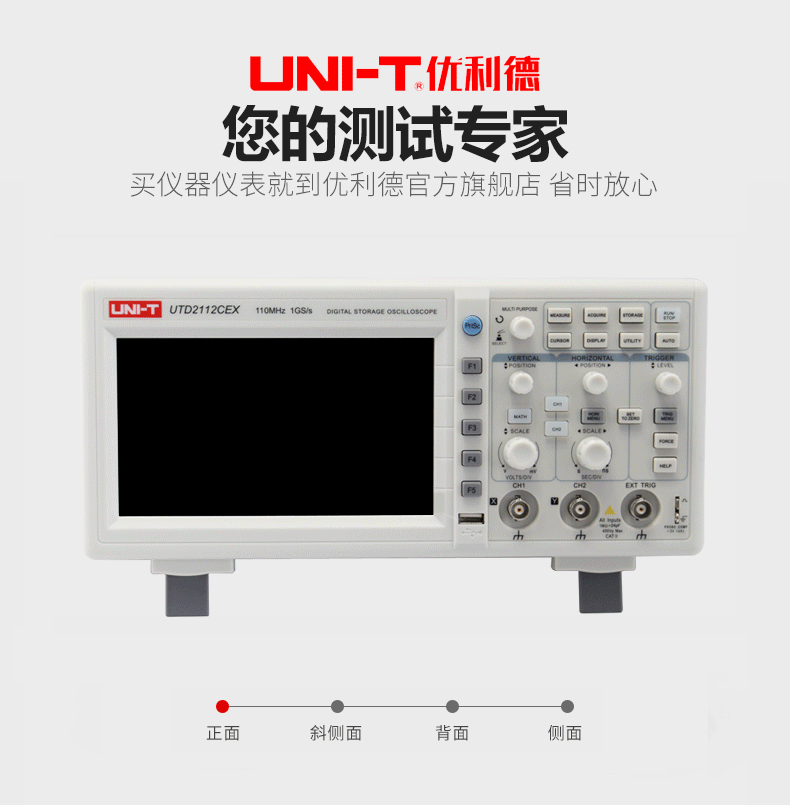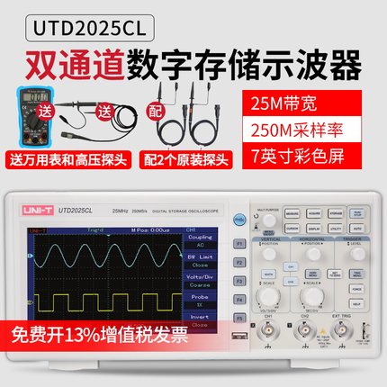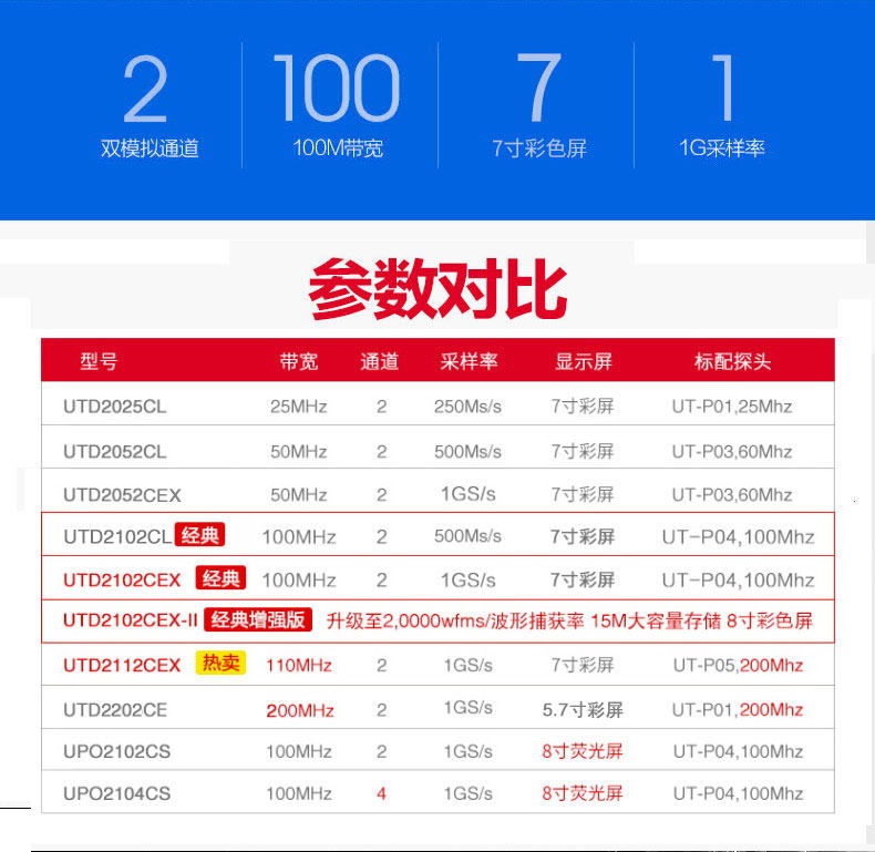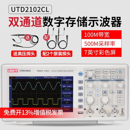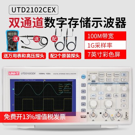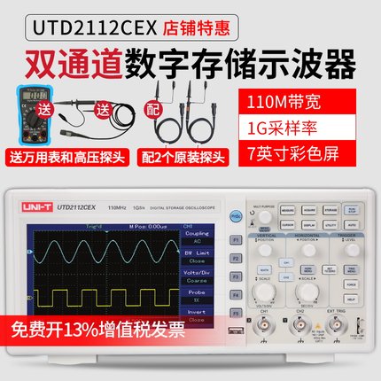 • 优利德UTD2112CEX数字示波器110M 双通道示波器数字200M高压探头