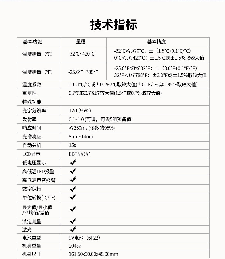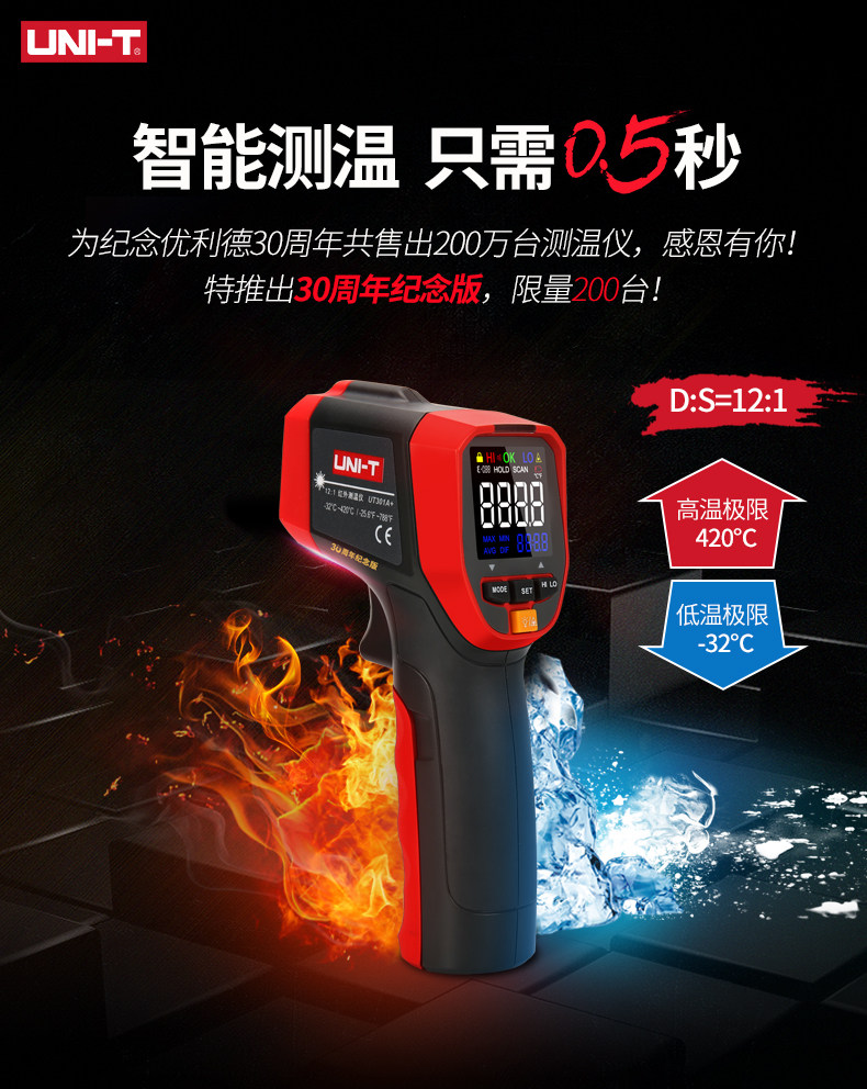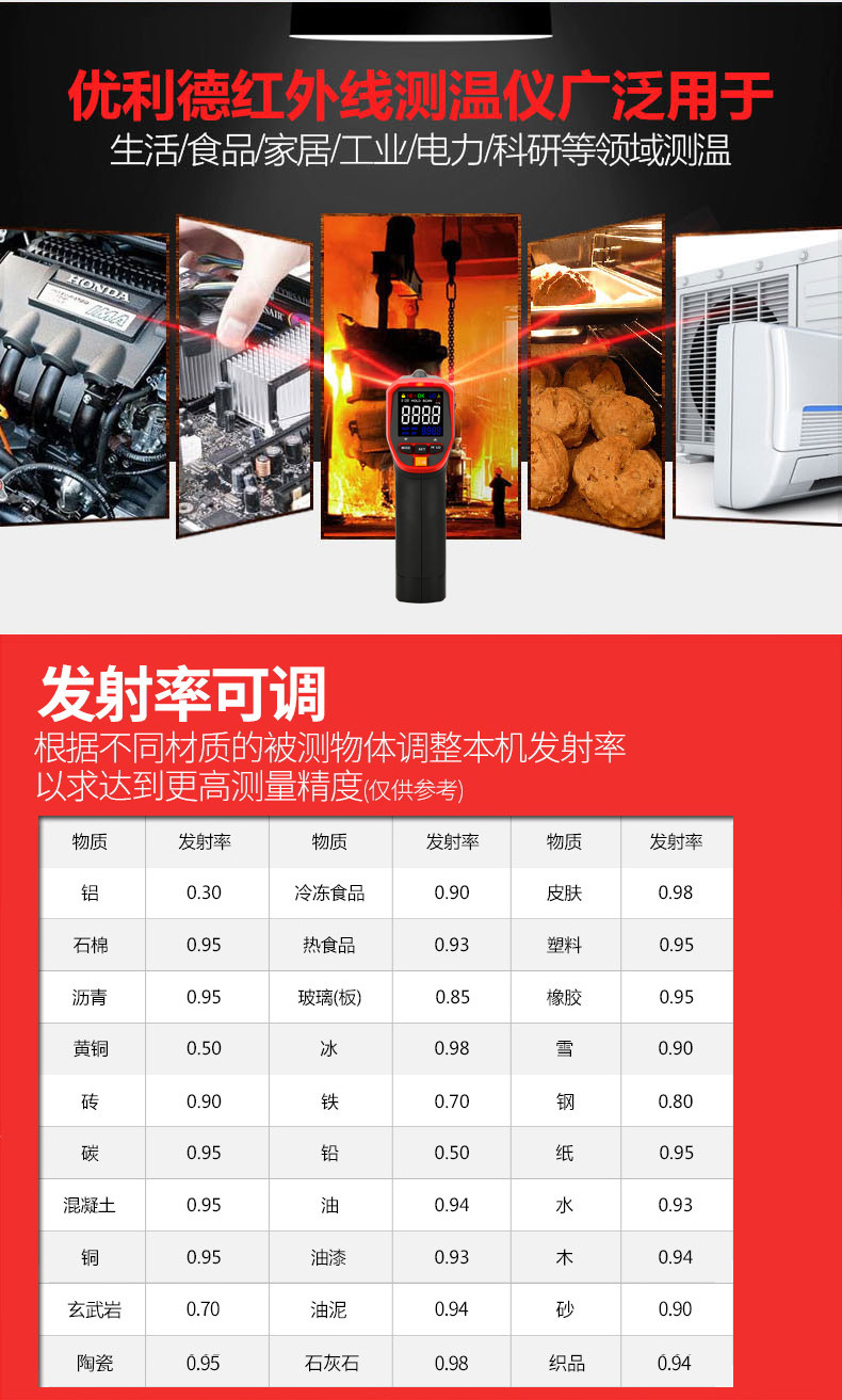 • 优利德UT301A+红外线测温仪手持式高精度测温枪非接触式测温仪