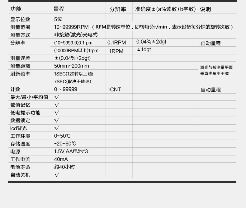 • 优利德高精度转速表 数显非接触式电机转速测速仪激光数字转速计
