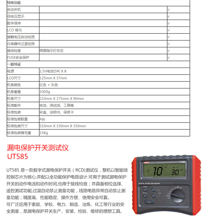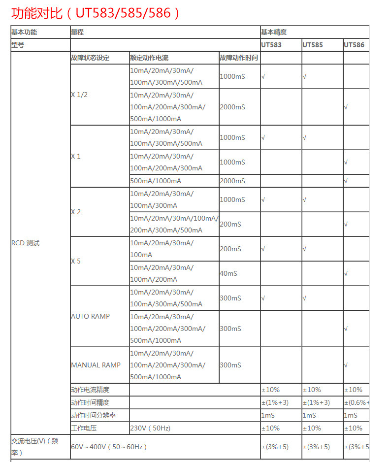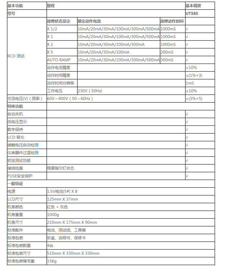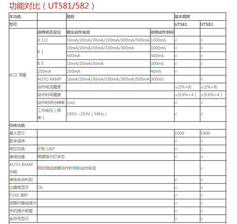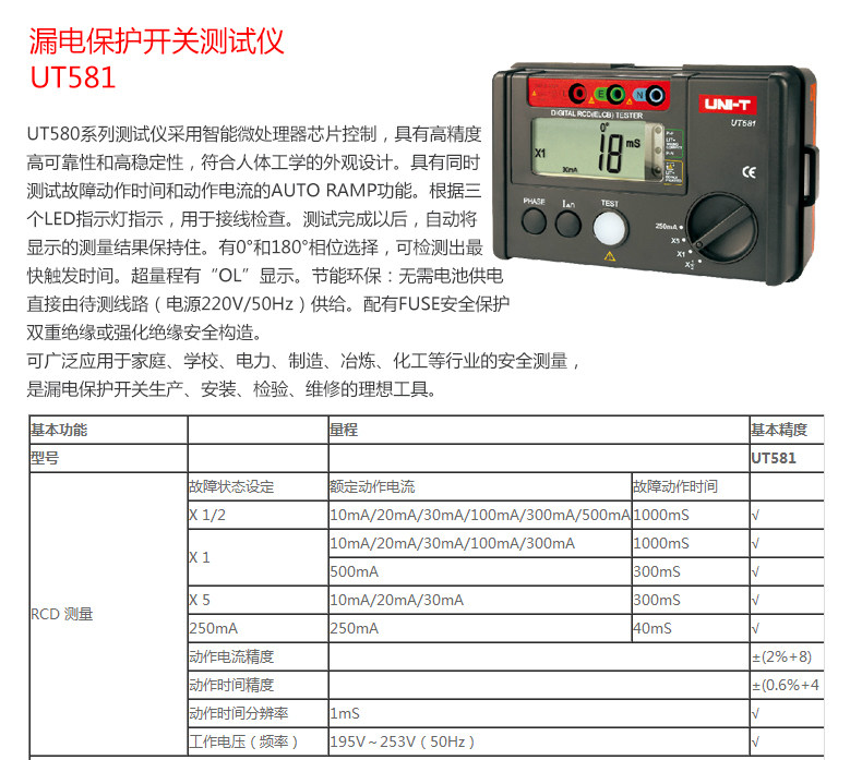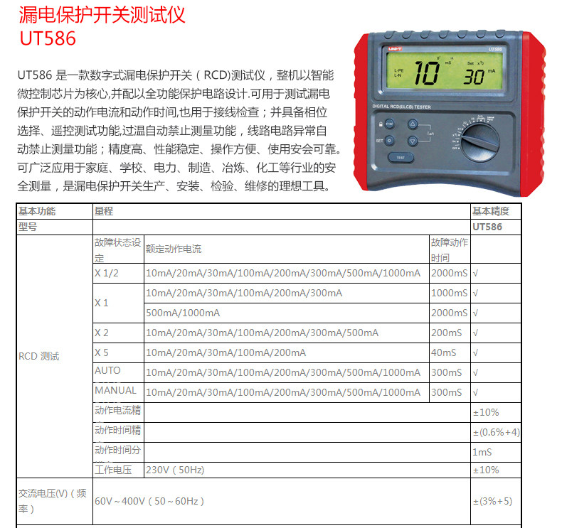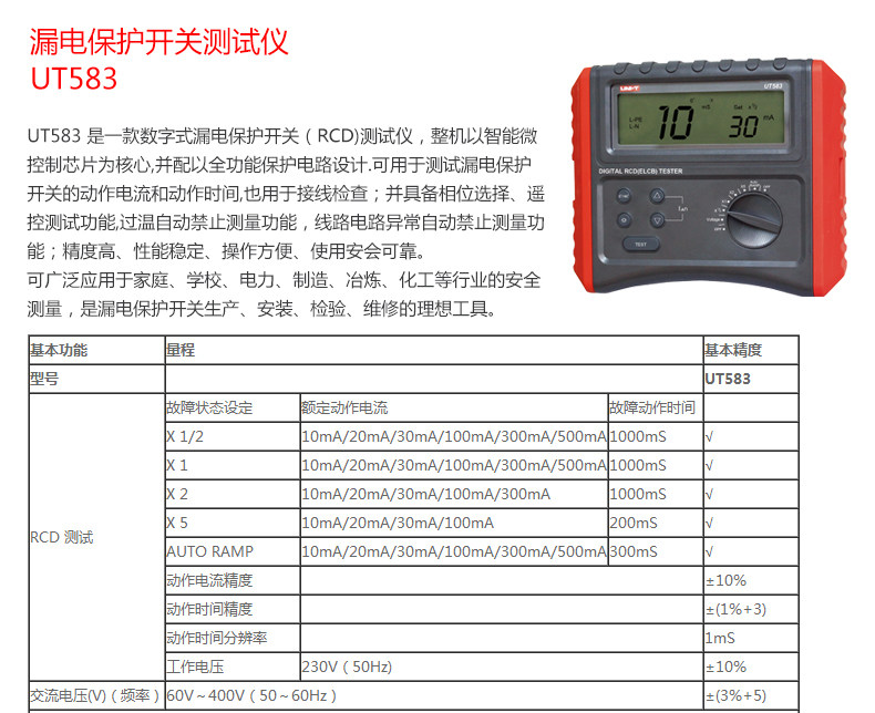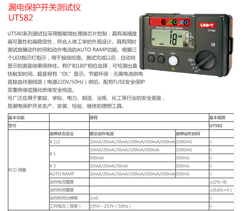 • 工业品优利德UT582/585/586漏电保护开关测试仪全功能保护测量仪